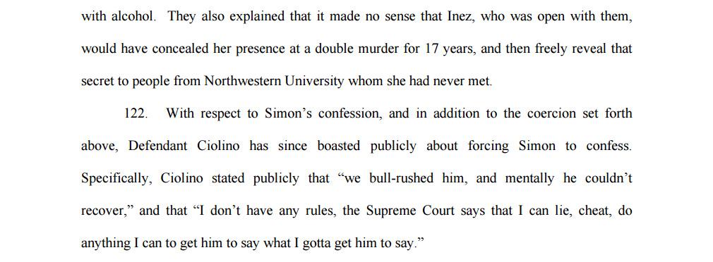 Ciolino bragged about coercing the false confession from Alstory Simon. Ciolino said,