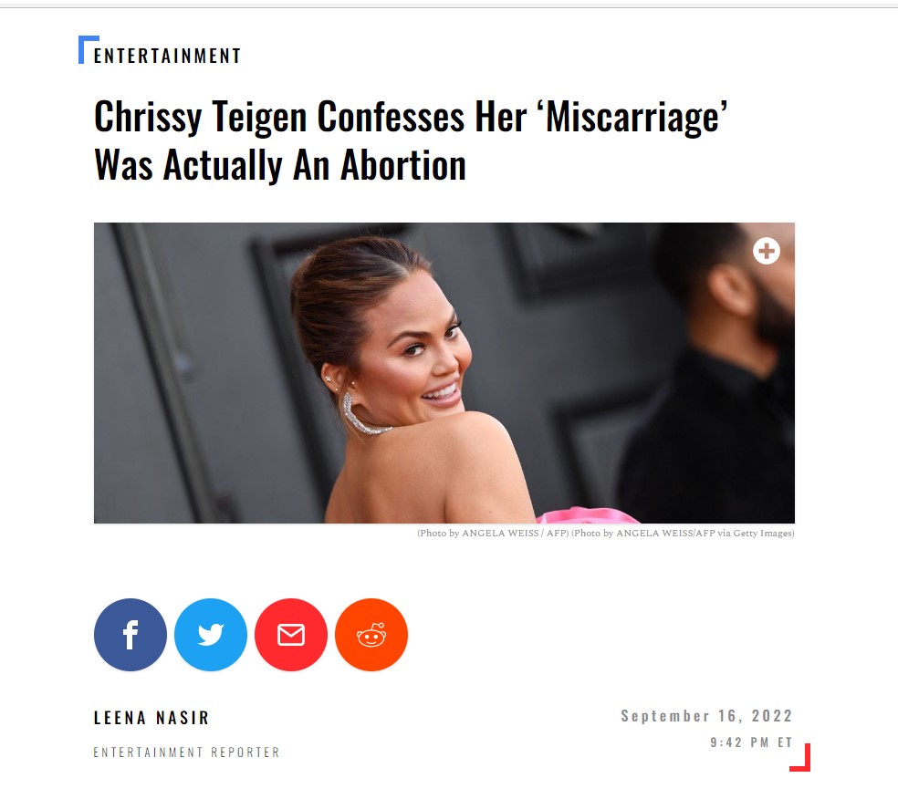 Big news when prominent narc Chrissy Teigen – who stars in Candace Owen’s documentary about BLM, a must watch on DailyWire, posts about losing her baby.