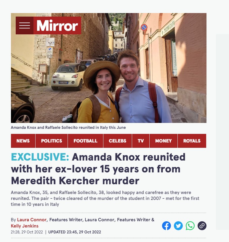 Things end with Amanda Knox, late in the game but desperate for attention. Like an older mare trying to catch up to the faster thoroughbreds, Knox chimed in on July 2021 -eight months after the duchess. The publicity seeking murderess overshared her alleged miscarriage in various media outlets mid-July 2021. The convicted liar is no more convincing that the other two but just as annoying.